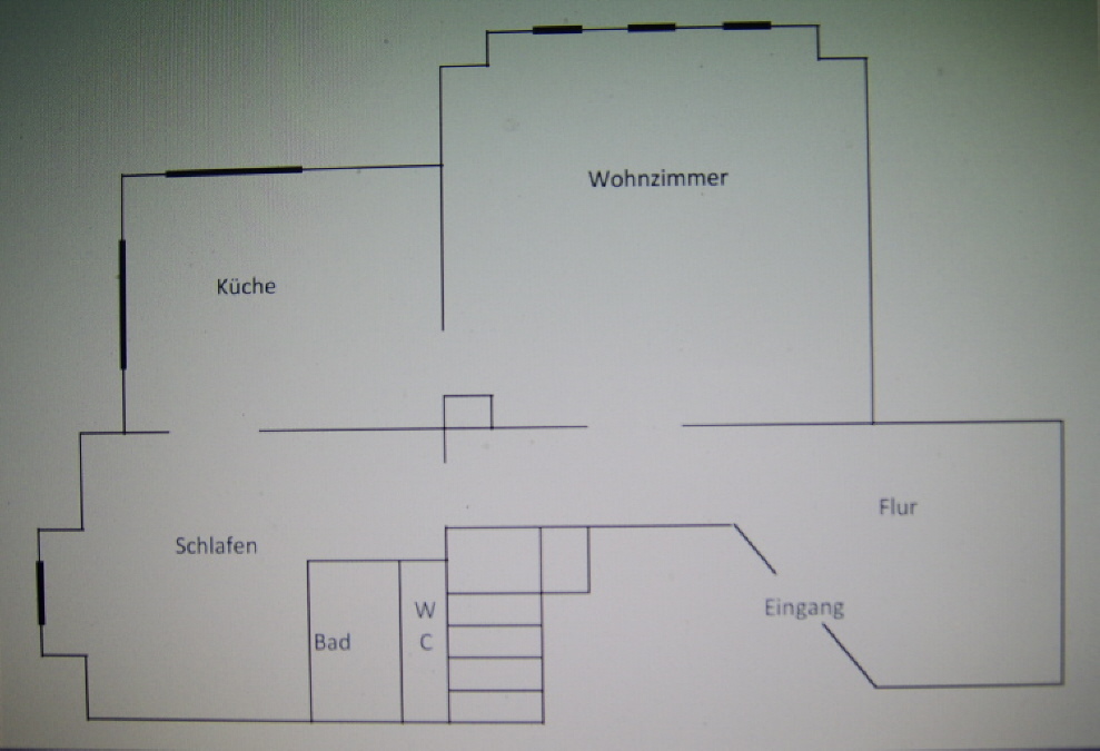2-Raum: Wohnzimmer, Küche, Doppelzimmer.