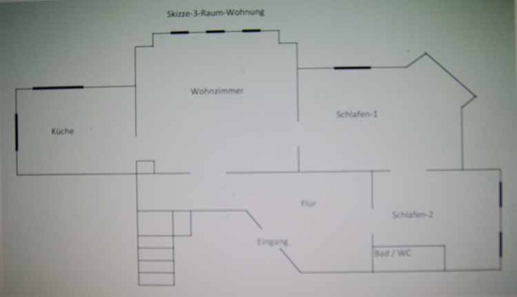 3-Raum: Wohnzimmer, Küche, Familienzimmer.