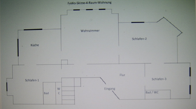 4-Raum: Wohnzimmer, Küche, Familienzimmer, Doppelzimmer.